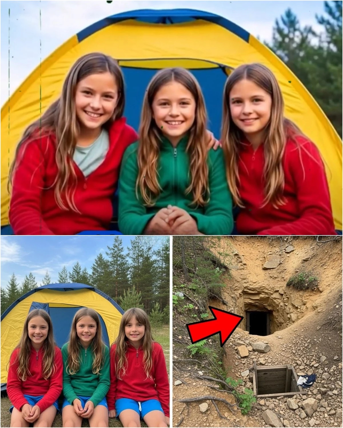 By morning, everything had changed. The girls’ tent was empty. Three sleeping bags lay neatly in place, as if the girls had vanished without struggle. Sharon screamed their names, while Mark tore through the forest searching. Within hours, the site turned into a search operation. Helicopters flew overhead. Volunteers combed the woods. Dogs tried to track scents, but the storm had washed away everything.