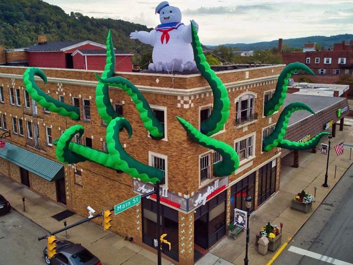 From giant inflatable ghosts to restaurant façades turned into movie scenes—like one establishment that dressed up Ghostbusters-style—modern Halloween décor captures the imagination in every possible way. Even first-time homeowners embrace the chaos, proudly declaring, “Sorry, neighbors, we’re that house!” as they fill their lawns with ghoulish figures and glowing spiders.