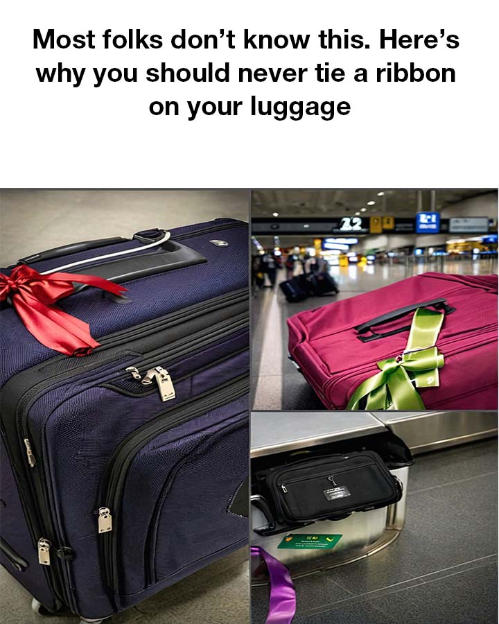 For years, many travelers have relied on a simple solution—tying a colorful ribbon, bandana, or string around the handle of their suitcase to make it stand out. It seems harmless and even clever, but according to airport staff, this well-intentioned travel hack might actually be working against you. What seems like a way to make your luggage easier to recognize could, surprisingly, be the very thing that delays or even separates you from your bag.