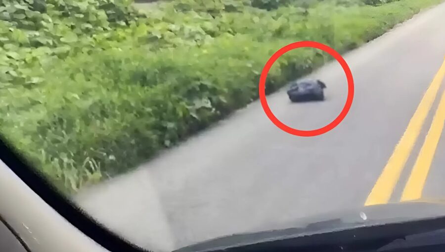 The road was nearly empty that afternoon. Just one car drove ahead of us, moving slowly, almost lazily, as if the driver had nowhere urgent to be. Then, in one swift motion, that peaceful moment shattered. The driver tossed something out of the window—a black garbage bag that tumbled across the asphalt and came to rest near the shoulder of the road.