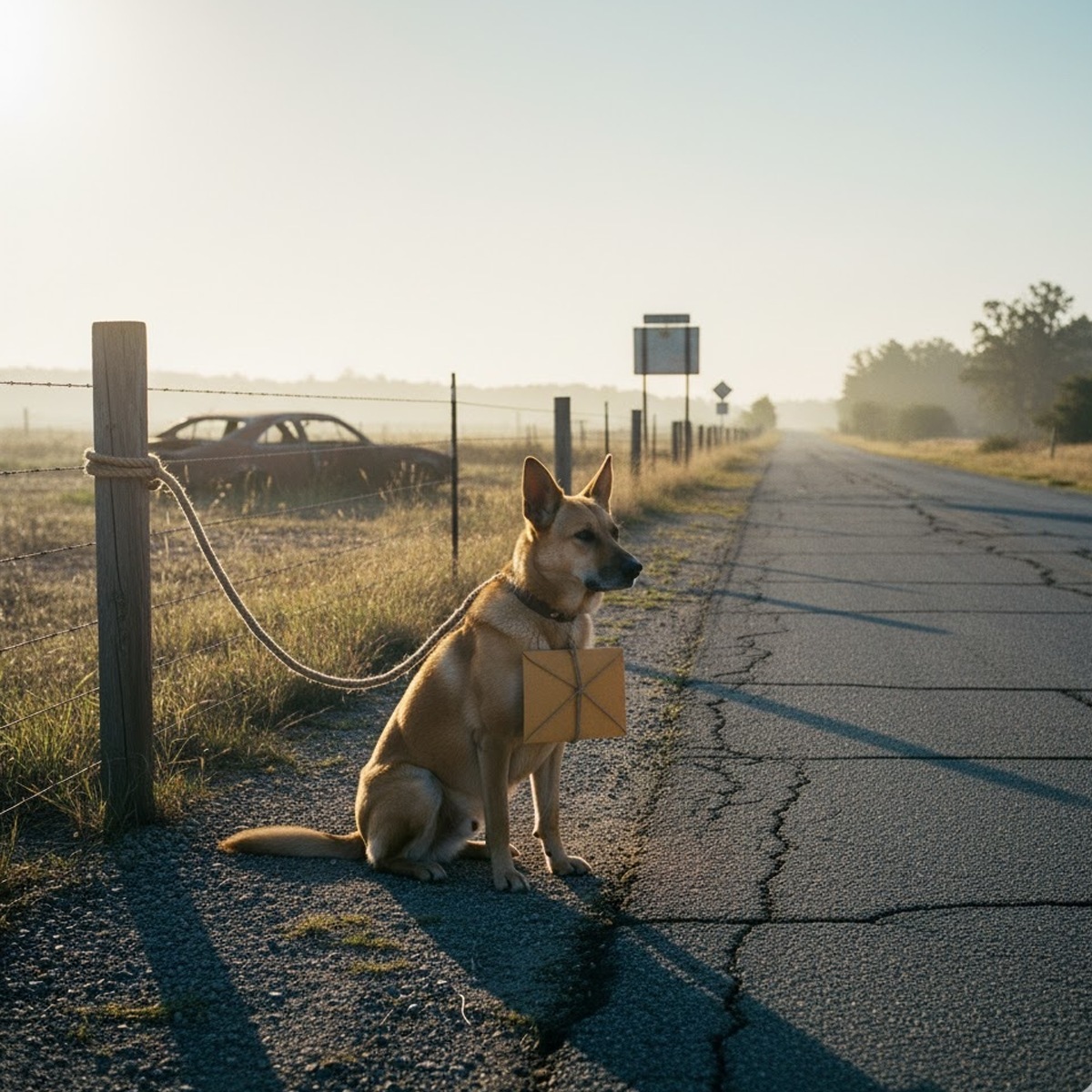 He Thought It Was Just a Stray Dog Tied to a Fence on a Deserted Highway — But When He Opened the Envelope Around Its Neck, the Words Inside Made His Bl00d Run Cold: ‘Do You Remember Me?’ 😱🐾