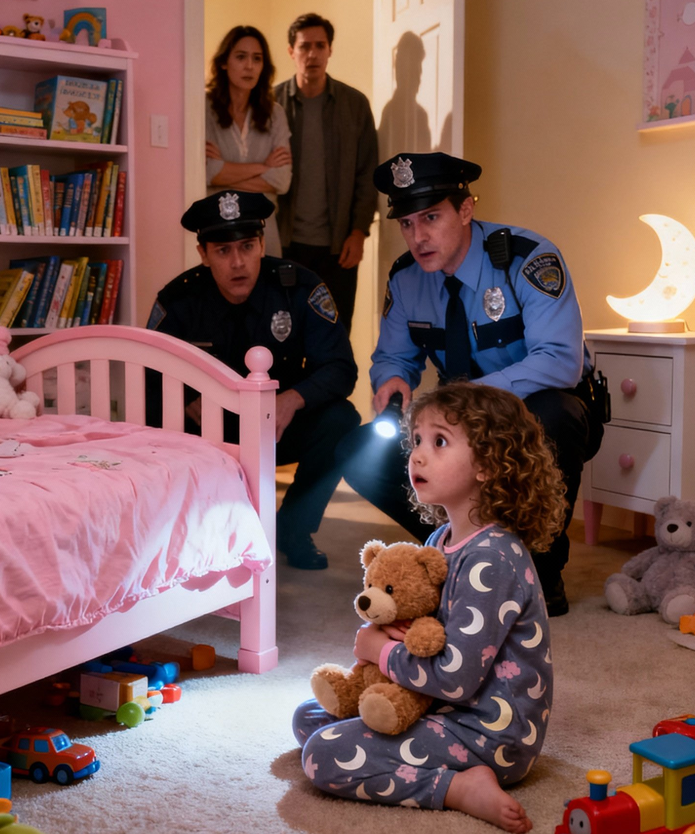 Officer Patel crouched down, lifted the bed skirt, and shone his flashlight. Dust bunnies. A crayon. A marble. Nothing out of place. He gave a reassuring smile.