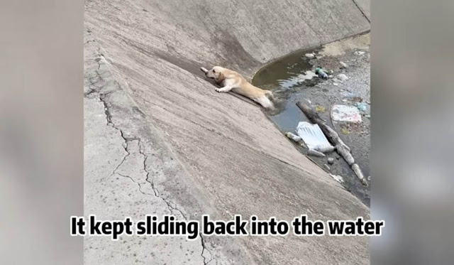 The water continued to creep higher, and fear overtook the exhausted animal. Its breathing became strained, and its legs trembled from fatigue. Time felt slow and unforgiving as the dog fought to survive, barely managing to keep its nose above the cold water. It had been struggling for what felt like hours, and its strength was slipping fast. Just when the situation seemed hopeless, fate quietly intervened.