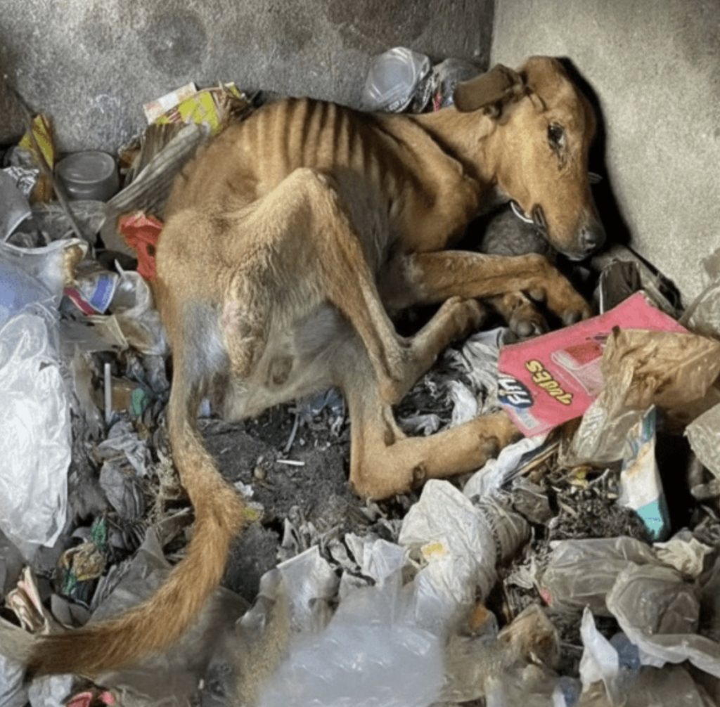 The smell of decay hung heavy in the thick, unmoving air—a painful reminder of a place long abandoned by compassion. In a neglected corner of Greece, surrounded by piles of trash and unsettling silence, lay a dog so fragile he seemed to fade into the filth around him. His body, little more than skin stretched over jutting bones, was curled into a trembling heap among discarded waste. He had no name, no strength to cry out, only a pair of sunken eyes staring from a face that looked more like a skull than a living being. He was slipping, inch by inch, toward a darkness he could no longer resist. And yet, his story was far from unusual. Thousands of abandoned animals all across the region were quietly enduring that same suffering, hidden behind the beauty of bustling cities and postcard-perfect villages.