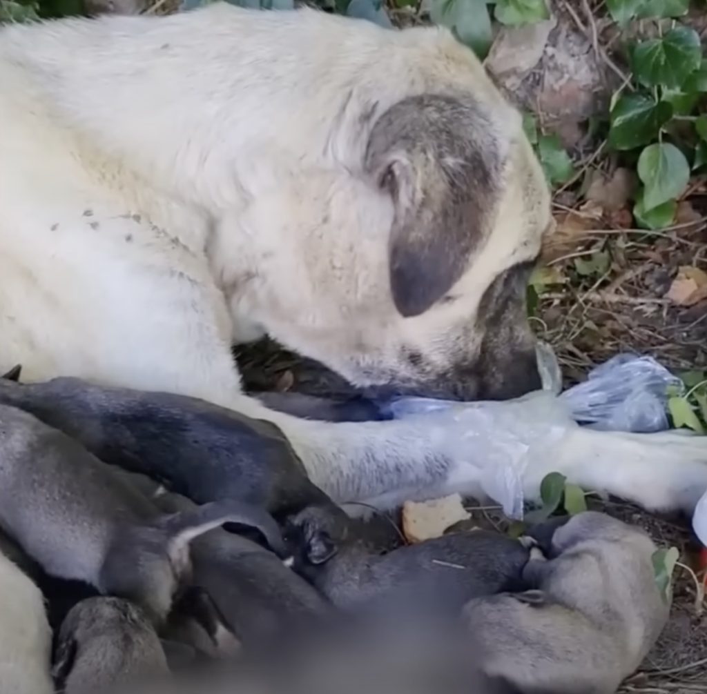 When rescuers first arrived at the scene, the sight before them was almost too heavy to bear. Eda, a gentle mother dog, was so frail that even lifting her head seemed like an impossible task. Her thin frame and exhausted eyes revealed the harsh reality she had endured—days without proper nourishment and nights filled with discomfort and pain. The struggle of giving birth under such unforgiving conditions had left her with a severe complication that caused her legs and thighs to swell, making it nearly impossible for her to move. Yet even in her fragile state, one thing stood out with heartbreaking clarity: she had never stopped caring for her newborn puppies. Every bit of energy she had left went into keeping them warm, fed, and safe.