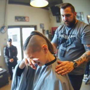 The gentle hum of clippers filled the small neighborhood barbershop, mingling with the faint scent of shaving cream and aftershave. A young woman sat nervously in the chair, her hands gripping the armrests…