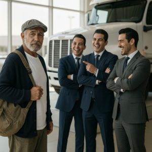 “I’m going to take five Mercedes trucks,” the older man said. His voice was calm, almost casual. Lucas Ferrer couldn’t hold it in. He laughed so hard that people across the showroom turned…