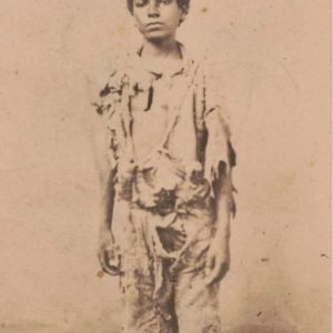 The photograph is haunting. A young boy, barely older than a child, stands in worn-out rags that hang from his thin frame. His eyes—serious, unwavering—lock onto the camera with a kind of quiet…